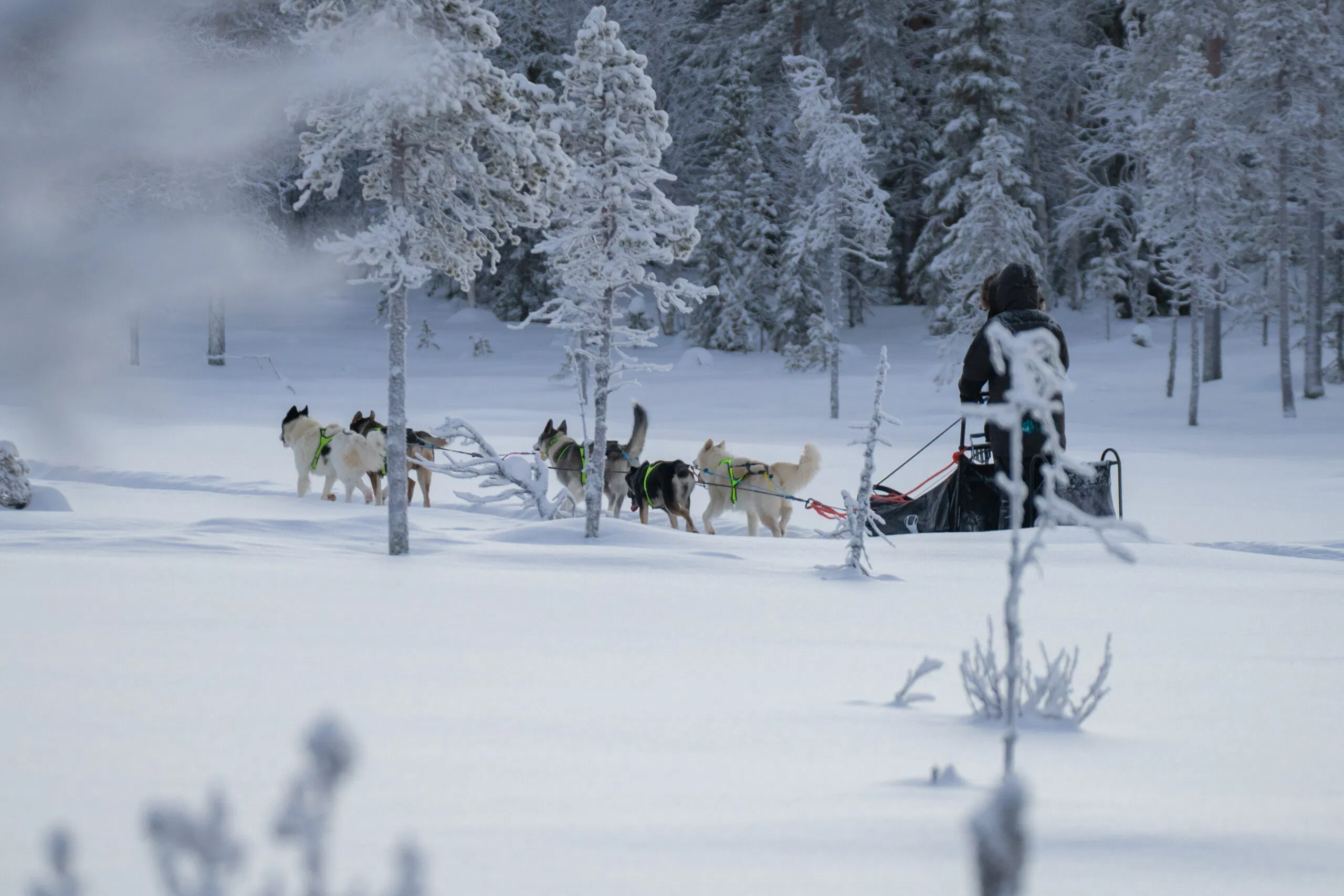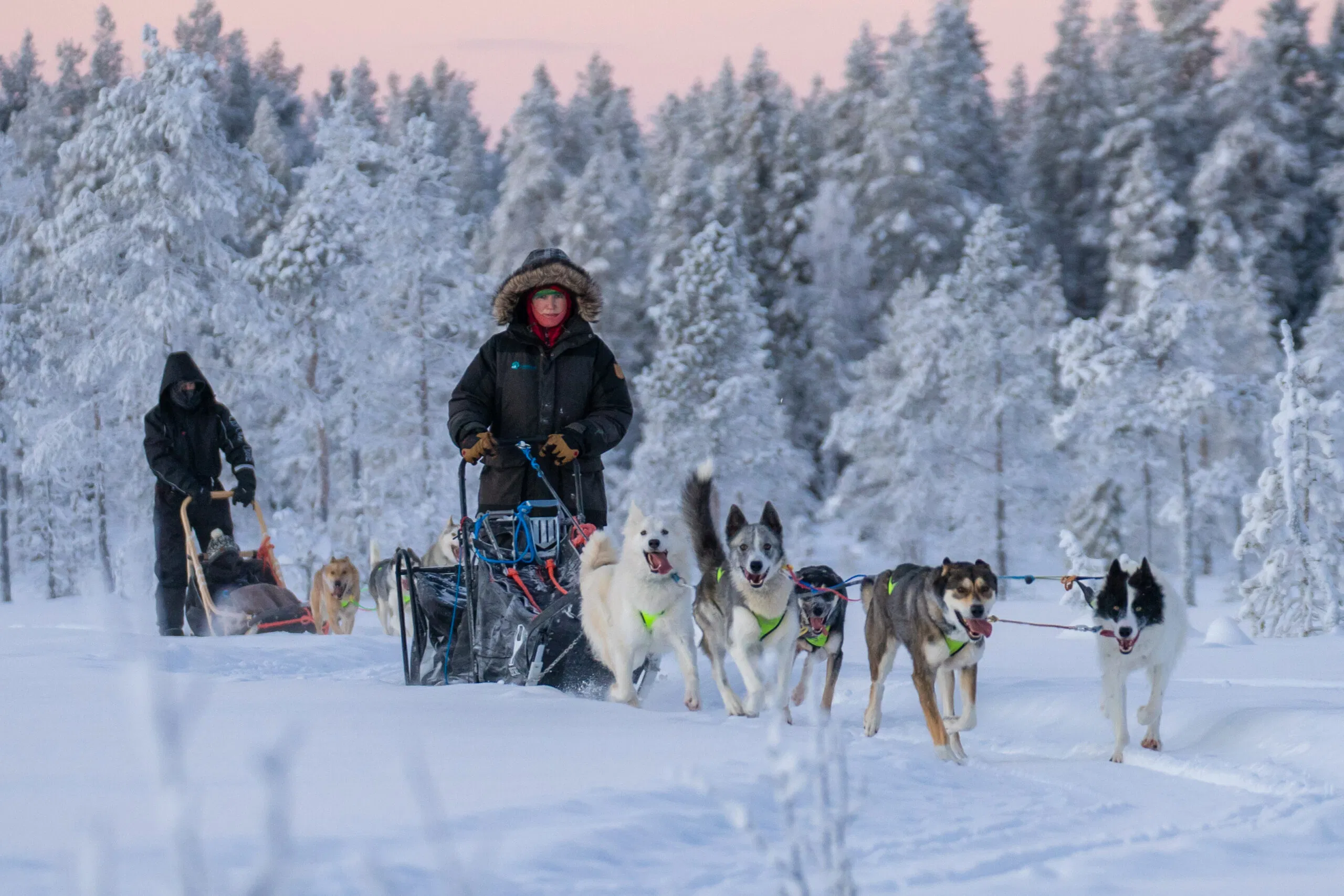 Der Schlitten gleitet lautlos durch die verschneiten Wälder, und du kannst dabei die Stille und Weite der Winterlandschaft voll in dir aufnehmen. Nach der Tour erwartet Sie ein wärmendes Getränk und spannende Geschichten von Ihrem Musher über die Arbeit und das Leben mit den Schlittenhunden.